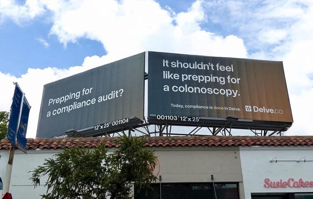 No one wants to do compliance. Everyone just wants compliance done. “Done in Delve” is one of those simple brand statements that can anchor anything they do. Even a nice colonoscopy joke.